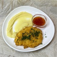 Филе куриное, сметана, соус сладкий-чили, яйцо, мука, сухари панировочные, картофель, соус